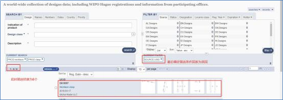 2,选择“Designs,”根据关键信息进行查找,例如:专利号,申请人,或者关键词。(如下图)