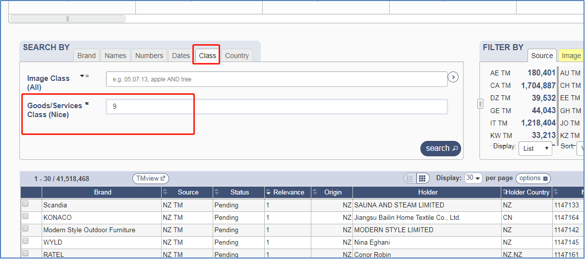 在搜索栏分别办理入商标名称,地区以及国际分类,就可以查询到相关的欧盟商标。