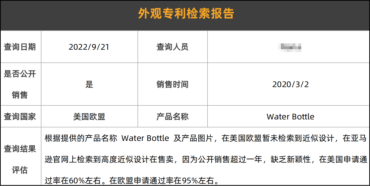 最后,如果你有类似的产品或想检索其他外观专利,可以将具体产品发给我们进行检索,我们可以免费提供的检索报告。
