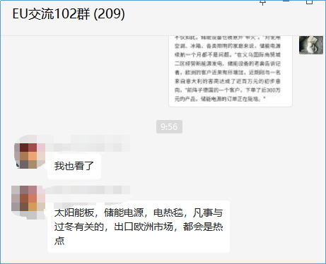 与此同时,关于欧洲取暖器热销的消息,在EU交流群已不胫而走。