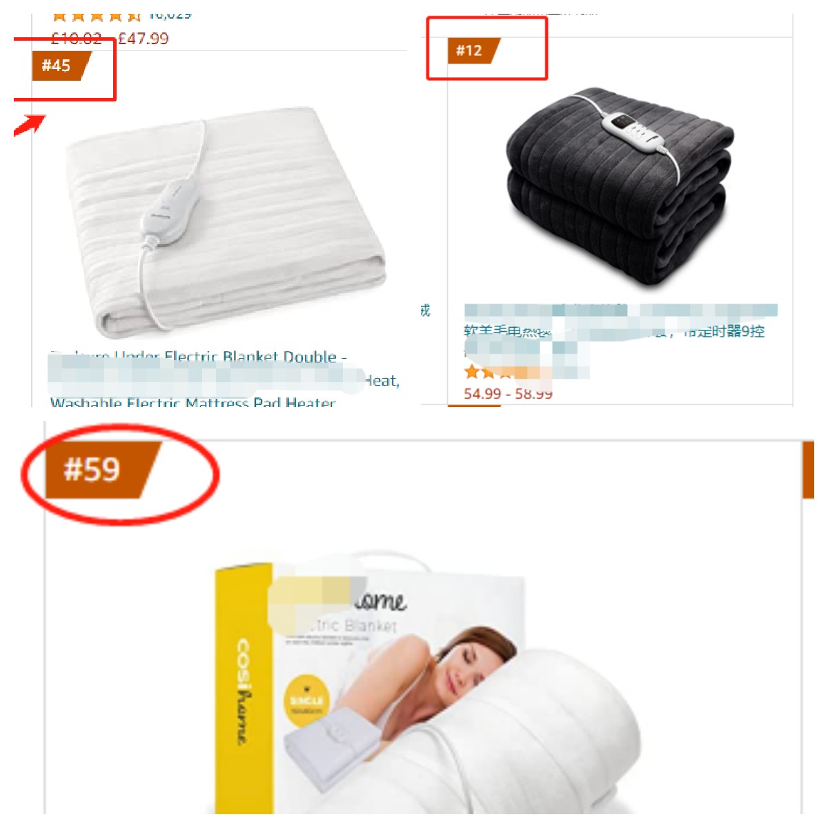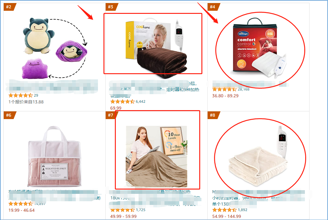 值得一提是,在亚马逊平台上,有关电热毯的产品的也紧俏其后。