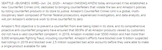 6月亚马逊成立全球打假团队