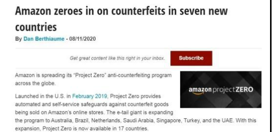 自今年以来,亚马逊为了打击跟卖家与造假商品,动作可谓频繁。先是在全球宣布成立全球打假团队,然后,再将亚马逊零计划扩展到澳大利亚等7个站点。