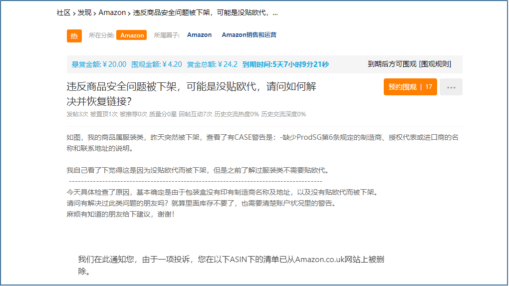 最近,就有欧盟卖家销售好好的商品,因为违反商品安全问题突然被下架,邮件警告他“缺少ProdsG第6条规定的制造商,授权代表或进口商的名称和联系地址的说明。”
