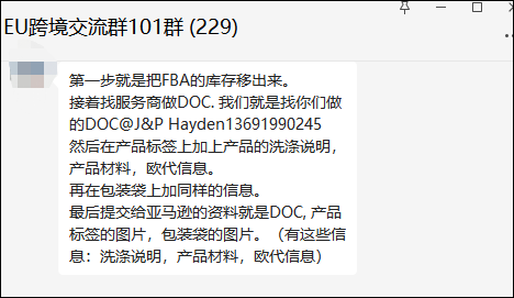 首先,将FBA的库存移出来,接着找服务商做DOC,然后在产品标签上加上产品的洗涤说明,产品材料与欧代信息,再在包装袋上加上同样的信息,最后给亚马逊提交DOC,产品标签的图片以及包装袋的图片。