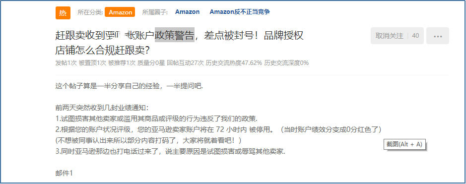 “赶跟卖,收到账户政策警告,差点被封号。”