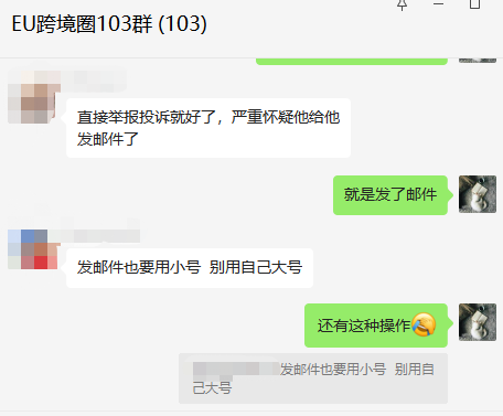 据EU圈的卖家认为,为了安全很多服务商赶跟卖的方式,甚至采取下虚假订单买空对方库存,甚至威胁这种方式赶跟卖。他认为,在赶跟卖的时候,用的邮箱最好用小号的,不要用大号的,这样能规避一些不必要的风险。