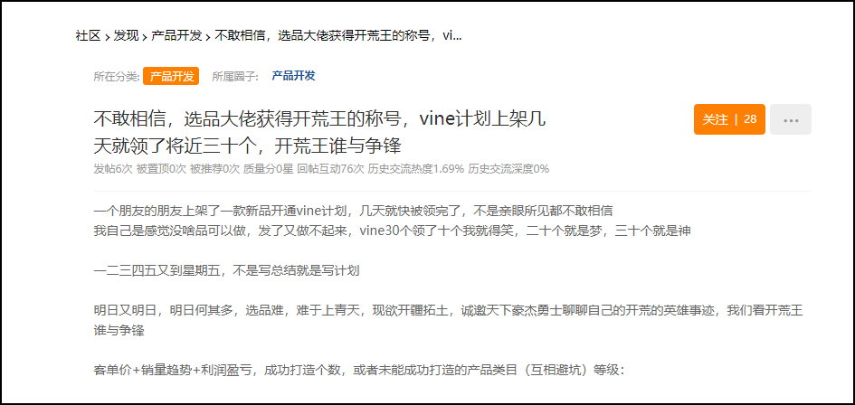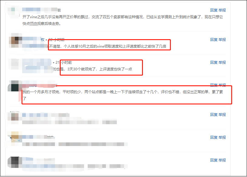某论坛的卖家也在热议,Amazon Vine的领取速度相对以前是有所提升。