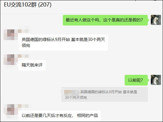 为此,品牌君专门咨询了EU跨境圈的群友,据答复,英国与德国的从9月份开始30个两天领完,而在以前要几天之后才有反应。