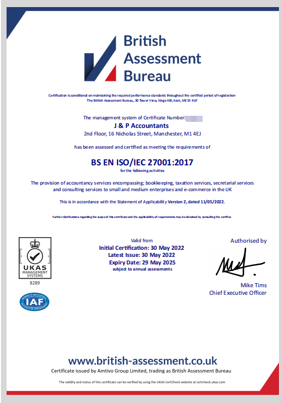 近日,J&P顺利通过了BSI(英国标准协会)注册的ISO/IEC 27001信息安全管理体系认证,这标志J&P在信息管理方面,已符合国际知名的信息安全管理标准,为跨境企业提供更可靠,更安全的服务保障。