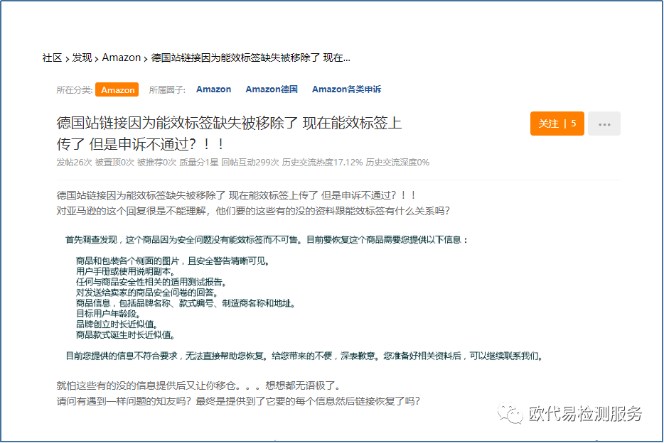 也有卖家因为能没有能效标签被移除,上传了标签之后,申诉不通过。