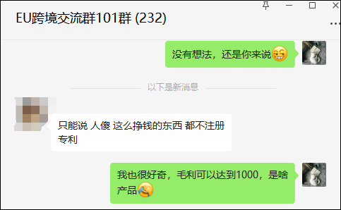 而EU交流群的群友也认为,一个毛利很高的产品,也不申请专利,不够机灵。