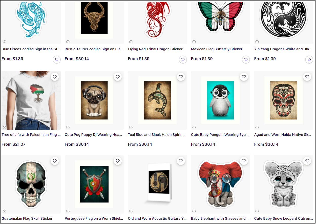 这批版权图,主要是动物卡通形象,骷髅头等元素,经常被印在枕套,衣服还有手机壳上。