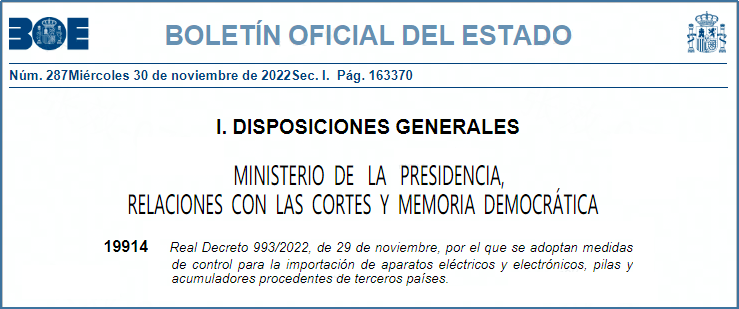 2022年11月29日,西班牙第993/2022号皇家法令打破了宁静。