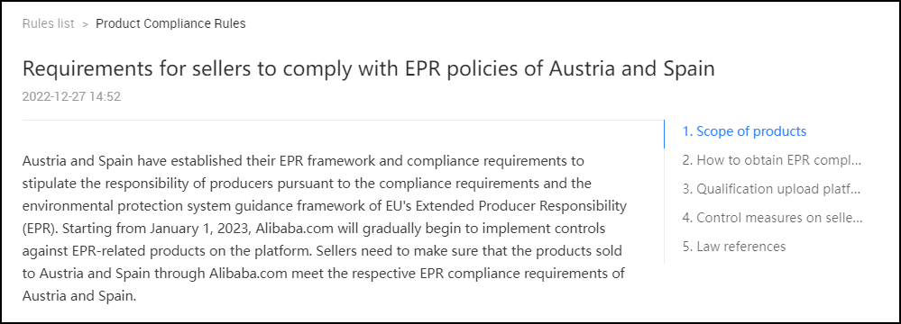 西班牙政策实施之后,阿里巴巴国际站,速卖通平台已要求跨境卖家注册上传西班牙EPR。