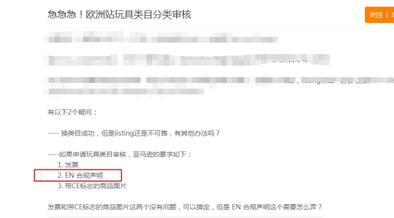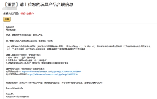 有留意EU跨境圈公众号的卖家应该看过我们公众号发布的《突发!众多大卖收到亚马逊红旗警告,要求“玩具”类目上传CE合规信息》的文章。