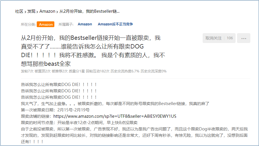 “从2月份开始,我的Bestseller链接开始一直被跟卖,我真受不了……”