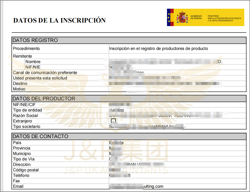 对于外国法人实体,该NIF以字母N开头,必须通过具有西班牙NIF或NIE的代表向国家税务管理局(AEAT)提出申请。也就是说,西班牙在注册包装法时,不仅仅需要提供其他资料,还设置了需要注册西班牙VAT的门槛。