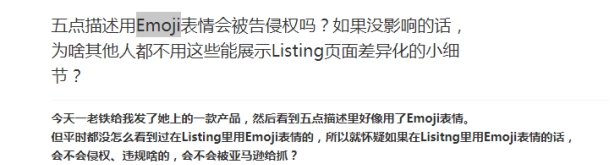 “亚马逊Listing页面5点描述用了表情是否会被告侵权?会不会被亚马逊给抓了?”(如下图)