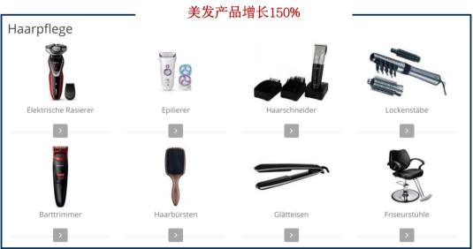 美发产品的销售增长率达150%,其中不仅包含卷发棒、直发夹、风筒、发梳等工具,还有洗发液、护发油等护理产品。