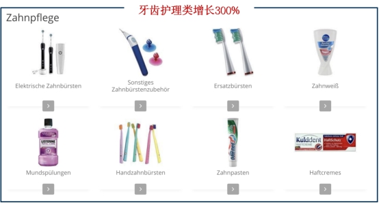 牙齿护理类产品,增长率达到300%,包括护理工具、仪器,还有牙膏、漱口水等产品。