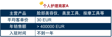 个人护理商家A主营产品是个护类的美容仪、按摩工具、美发工具等,上架产品客单价约30欧,加入Real不到一年,销量已经突破40万欧元。