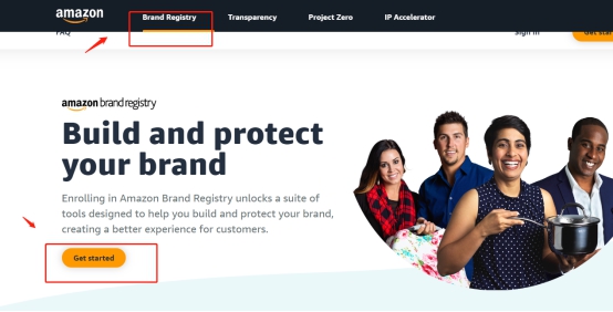 2.点击右下角”Brand Registry “,在展开的页面点击“Get started”。(如下图)