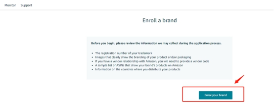 6.点击“Enroll Your Brand”按键进行品牌备案(如下图)