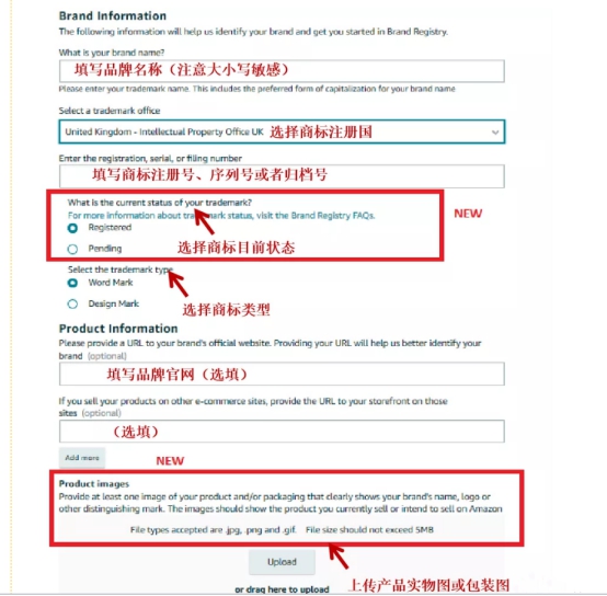注意:在填写的过程,一定要注意品牌名称,上传的实物图要清晰。