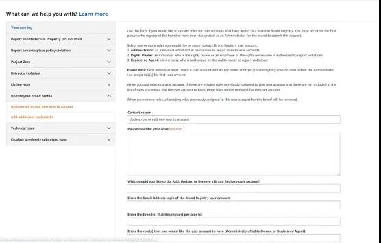2. 进入亚马逊品牌注册后台,根据自己的需求进行补充填写。
