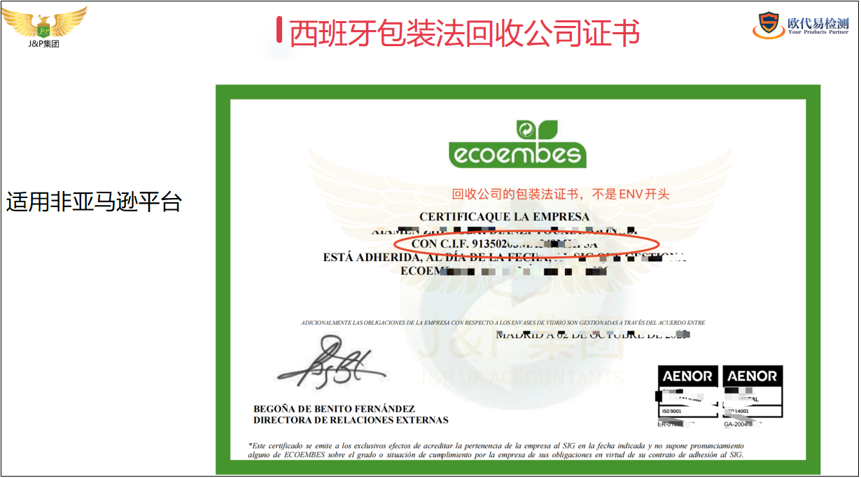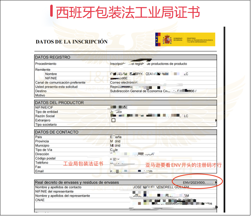 无论是工业部注册的证书,还是从包装机构注册的证书,两者都属于西班牙包装法合规的证书。不过,对于亚马逊卖家建议注册工业局颁发的证书。