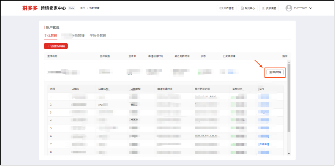 1.登录账户管理页面,点击右侧的主体详情。