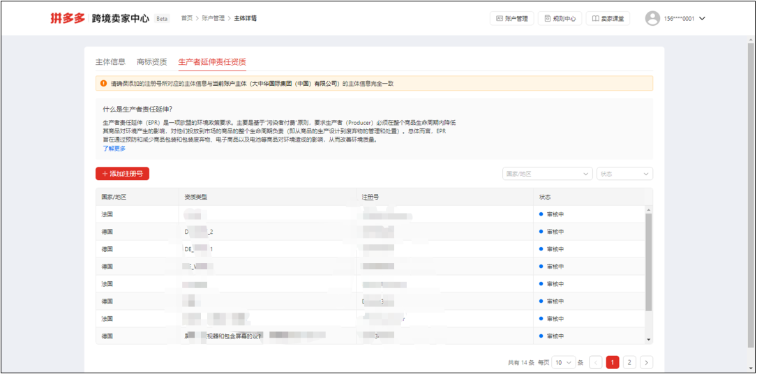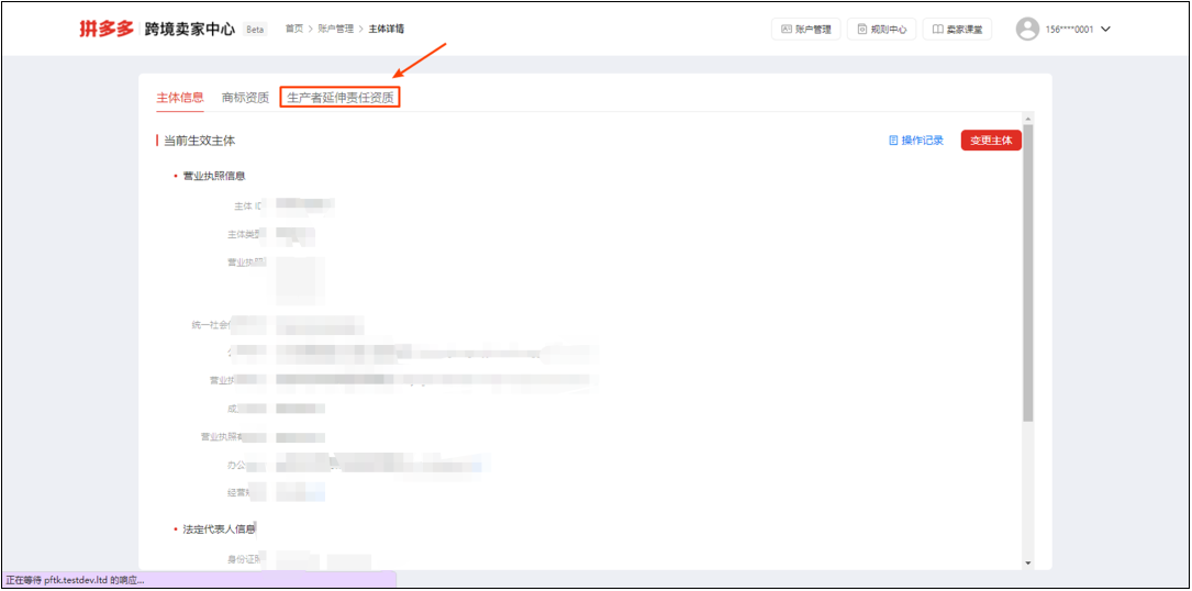 02.在主体详情里面点击“生产者延伸责任资质”。