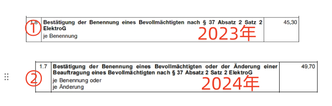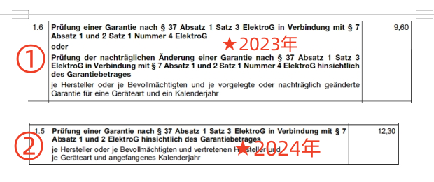 近期,德国联邦法规公布了2024年最新的德国WEEE和电池法费用价格。通知告知,与2023年相比,从2024年起,季度管理费以及担保费价格有所上调。
