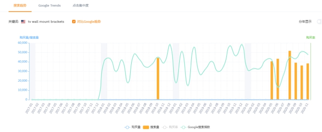 我们从2020年欧美数据分析来看,八月份销量最高随后有所下降,不过,在11月份,搜索数据再显示上升的状态。