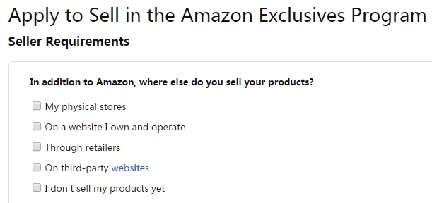 这些仅仅是最低的要求,并非所有申请人都可以参加Amazon Exclusives项目。亚马逊还会评估申请卖家的产品独特性和“合适性”。