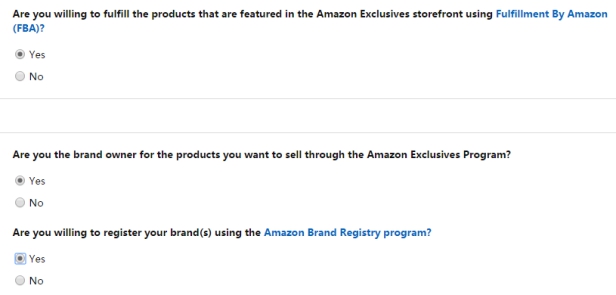 接下来,亚马逊将要求您确认您是打算在亚马逊独家销售的产品的品牌。