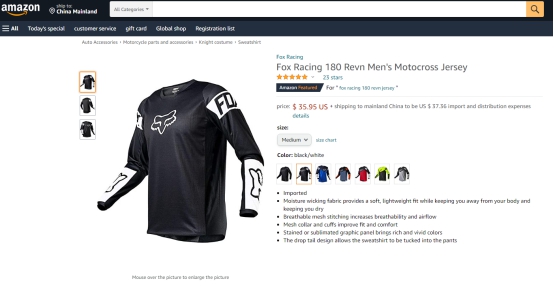 Fox Racing在亚马逊的搜索趋势