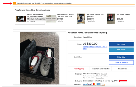 注:物品页面的休假提示,并且自动延长预期到达时间(Estimated Delivery Date)