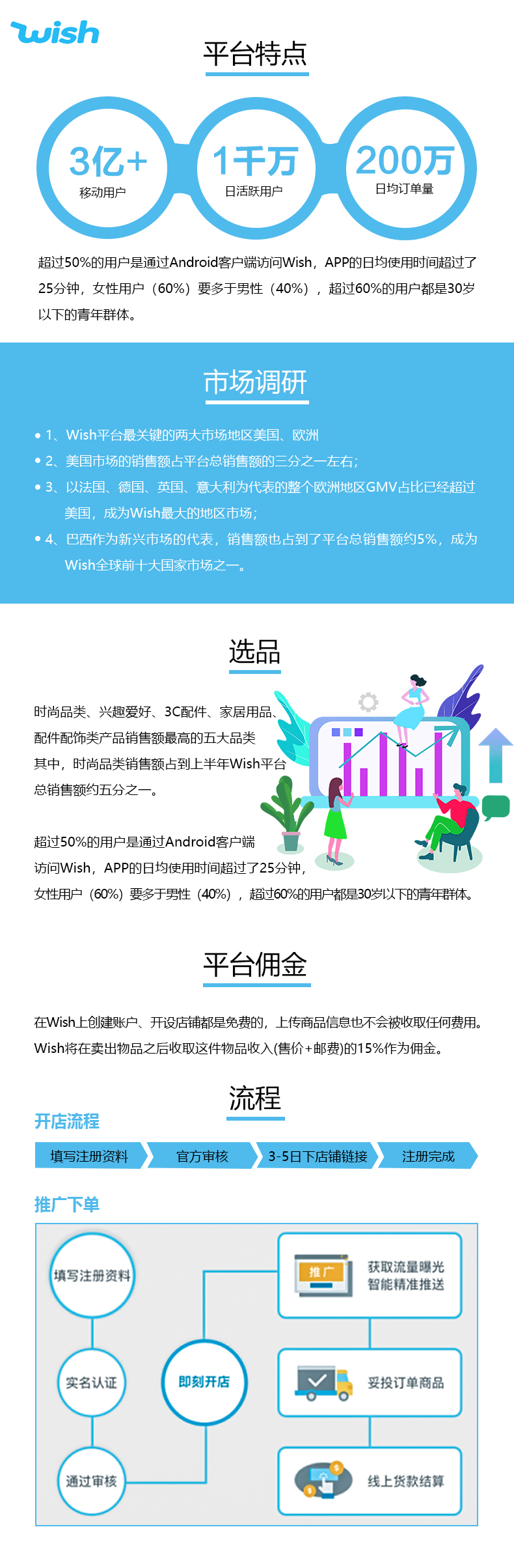 Wish 2011年成立于硅谷,是一家高科技独角兽公司,有90%的卖家来自中国,也是北美和欧洲最大的移动电商平台。
