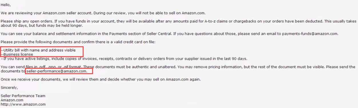 提交账号法人相关账单,营业执照,如果已经上传了listing的话,最好提交正规发票。